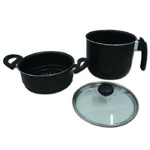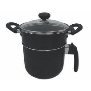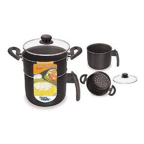 Cuscuzeira Preta com Alças e Tampa de Vidro N14 , revestida com antiaderente, possibilitando o uso com menos gordura no preparo de alimentos e também facilitando a limpeza.Seu formato facilita a retirada dos alimentos, pois sua borda faz com que o mesmo escorregue para o prato ou tigela. Com cabo de baquelite resistente ao calor. Produto nacional. Registro INMETRO: 000783/2018 Especificações: Material: 90% liga de alumínio; 5% baquelite; 5% antiaderente; tampa de vidro Cor: Preto Capacidade: 1,60 litros Medidas: 19 x 15 x 25,5 cm A x L x C Peso: 625g