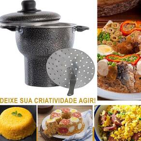 Para preparar esse deleite com segurança e praticidade, nada como a Cuscuzeira de alumínio craqueada da linha Prolar. Ela é uma das favoritas dessa linha, e não é à toa. Além de sofisticada e bonita, é altamente durável e prática, facilitando o preparo do cuscuz e de muitas outras delícias.
