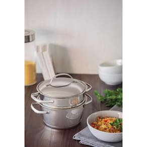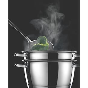Cuidar dos detalhes é demonstrar carinho. A Cuscuzeira Tramontina Allegra em Aço Inox com Fundo Triplo 2 Peças da linha Allegra foi criada para tornar mais simples as tarefas de forno e fogão. O fundo triplo (aço inox + alumínio + aço inox) distribui o calor uniformemente, proporcionando um cozimento mais rápido e uniforme, economizando energia e deixando os alimentos aquecidos por mais tempo.