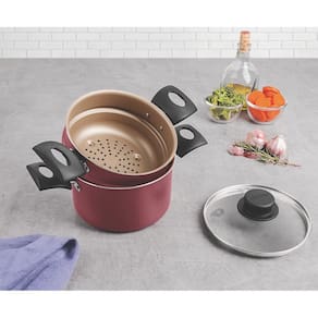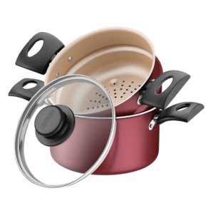 A cuscuzeira Tramontina Turim em alumínio com revestimento interno e externo em antiaderente Starflon Max vermelho 16 centímetros de diâmetro é a escolha ideal para preparar aquele cuscuz delicioso para seu café da manhã ou jantar. Com ela, você cozinha os alimentos de maneira rápida e uniforme, sem que grudem em sua superfície, pois sua produção é em alumínio com revestimento interno e externo em antiaderente Starflon Max. Suas alças e pegador são em materiais antitérmicos, não aquecem e proporcionam um manuseio muito mais seguro e confortável. Além de todas essas características, ela vem com tampa de vidro temperado e bordas de aço inox e pode ser lavada na máquina de lavar louças!