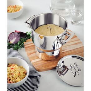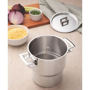 Para os apaixonados por cuscuz chegou a Cuscuzeira Tramontina Brava em Aço Inox com Alças e Tampa 2,1 L 14 cm de diâmetro! Perfeita para o preparo dessa deliciosa receita, ela traz toda a beleza e durabilidade do aço inox. Prática e fácil de usar, possui tela perfurada para cozinhar ao vapor e tampa com saída de vapor com encaixe perfeito. Possui capacidade de 2,1 litros e um design moderno que garante bom gosto e estilo para sua cozinha!