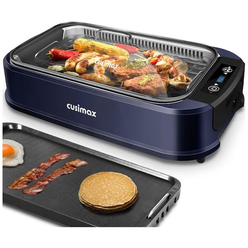 Grelhe sempre e onde quiser Que alívio Não há necessidade de lutar com grelhar do lado de fora em uma tempestade e engasgar até a morte com a fumaça da sua churrasqueira ao ar livre, ficando presa no guarda chuva do pátio. A churrasqueira sem fumaça Cusimax faz com que sua casa NÃO FUMA MAIS NUBLADO. Basta sentar e grelhar e comer churrasco em casa Esta churrasqueira interna elétrica economiza seu dinheiro saindo para churrasco. Aproveite em condomínio, RV, festa ou pátio sem problemas. Aquece rápido e cozinha uniformemente Com os tubos de aquecimento Double U, esta chapa para grelhar interna fornece aos alimentos a temperatura rápida e consistente, selando o sabor e a umidade e, em seguida, traz um bife suculento. A chapa perfurada da grelha pode filtrar o excesso de óleo, também deixa a carne com as marcas da grelha como faz uma grelha a carvão. Seu café da manhã com bacon e ovos, panquecas, sai perfeitamente da chapa. 2 em 1 Grill Griddle com tampa de vidro Basta trocar a grelha superior , grelha como quiser. A grelha elétrica Cusimax oferece a possibilidade de terminar suas refeições de um dia inteiro em um dispositivo, economizando o trabalho de retirar outro dispositivo Bacon cozido sem salpicos. A tampa de vidro também mantém o calor bem com o controle do termostato e conveniente para ver sua comida