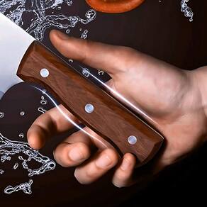 - Design e Estilo: O Cutelo de Chef apresenta um design elegante e funcional que não só melhora a estética da sua cozinha, mas também otimiza o desempenho culinário. O equilíbrio perfeito entre peso e estrutura facilita o manuseio e proporciona uma experiência de corte suave e eficiente.