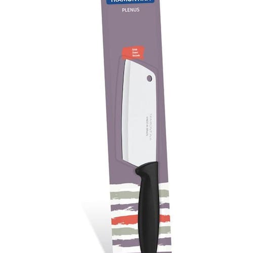 Cutelo Tramontina Plenus com Lâmina em Aço Inox e Cabo de Polipropileno Preto 5Para deixar as receitas mais deliciosas, o Cutelo Tramontina Plenus com Lâmina em Aço Inox e Cabo de Polipropileno Preto 5 Polegadas da Linha Plenus é a escolha certa. Confortável de usar e prático, ele vai dar um toque a mais nas suas receitas. Ideal para quebrar e separar ossos. Produzido com cabo em polipropileno e lâmina de aço inox de 5 polegadas.Ideal para quebrar e separar os ossos.A lâmina de aço inox têm maior durabilidade do fio devido ao tratamento térmico. O cabo de polipropileno possui maior resistência e durabilidade. Pode ir à máquina de lavar louças facilitando seu dia a dia.Uso seguro e adequado:Antes da primeira utilização, lave bem a peça e seque-a. Produto cortante e perfurante: tenha cuidado ao manusear e mantenha fora do alcance das crianças. Para maior durabilidade do produto recomenda-se secar bem antes de guardar, mesmo após lavagem em máquina. Recomenda-se o uso de tábuas de polipropileno ou madeira da Tramontina para maior durabilidade do fio da faca. Não é indicado o uso da faca para o corte de alimentos congelados. Mantenha sempre sua faca afiada utilizando os afiadores da Tramontina.Para descarte dos produtos e embalagens siga as orientações de reciclagem vigentes.Garantia: 90 dias de garantia legal para vícios ou defeitos de fabricação.Medidas aproximadas do produto- Comprimento: 3 cm- Altura: 39 cm- Largura: 8 cm- Peso: 155 g