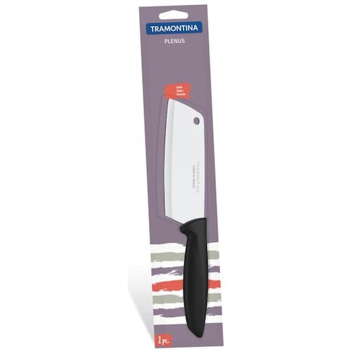 Cutelo Tramontina Plenus com Lâmina em Aço Inox e Cabo de Polipropileno Preto 5 Para deixar as receitas mais deliciosas, o Cutelo Tramontina Plenus com Lâmina em Aço Inox e Cabo de Polipropileno Preto 5 Polegadas da Linha Plenus é a escolha certa. Confortável de usar e prático, ele vai dar um toque a mais nas suas receitas. Ideal para quebrar e separar ossos. Produzido com cabo em polipropileno e lâmina de aço inox de 5 polegadas. Ideal para quebrar e separar os ossos. A lâmina de aço inox têm maior durabilidade do fio devido ao tratamento térmico. O cabo de polipropileno possui maior resistência e durabilidade. Pode ir à máquina de lavar louças facilitando seu dia a dia. Uso seguro e adequado: Antes da primeira utilização, lave bem a peça e seque-a. Produto cortante e perfurante: tenha cuidado ao manusear e mantenha fora do alcance das crianças. Para maior durabilidade do produto recomenda-se secar bem antes de guardar, mesmo após lavagem em máquina. Recomenda-se o uso de tábuas de polipropileno ou madeira da Tramontina para maior durabilidade do fio da faca. Não é indicado o uso da faca para o corte de alimentos congelados. Mantenha sempre sua faca afiada utilizando os afiadores da Tramontina. Para descarte dos produtos e embalagens siga as orientações de reciclagem vigentes. Garantia: 90 dias de garantia legal para vícios ou defeitos de fabricação. Medidas aproximadas do produto - Comprimento: 3 cm - Altura: 39 cm - Largura: 8 cm - Peso: 155 g