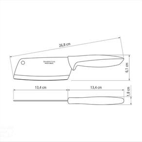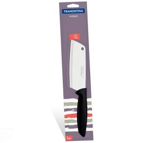 Para deixar as receitas mais deliciosas, o Cutelo Tramontina Plenus com Lâmina em Aço Inox e Cabo de Polipropileno Preto 5 Polegadas da Linha Plenus é a escolha certa. Confortável de usar e prático, ele vai dar um toque a mais nas suas receitas. Ideal para quebrar e separar ossos. Produzido com cabo em polipropileno e lâmina de aço inox de 5 polegadas. Orientações Ideal para quebrar e separar os ossos.A lâmina de aço inox têm maior durabilidade do fio devido ao tratamento térmico. O cabo de polipropileno possui maior resistência e durabilidade. Pode ir à máquina de lavar louças facilitando seu dia a dia. Características Gerais EAN13 7891112225497 DUN14 17891112225494 NCM 8214.90.90 Peso Líquido 0,1300 kg. Peso Bruto 0,1550 kg. Metragem 0,000587 m³. Dimensões Embalagem (Compr. X Larg. X Alt.) 20x 77x 381 mm. Dimensões Produto (Compr. X Larg. X Alt.) 268x 61x 18 mm. Cor 1 000000 Hexa Observações Antes da primeira utilização, lave bem a peça e seque-a. Produto cortante e perfurante: tenha cuidado ao manusear e mantenha fora do alcance das crianças. Para maior durabilidade do produto recomenda-se secar bem antes de guardar, mesmo após lavagem em máquina. Recomenda-se o uso de tábuas de polipropileno ou madeira da Tramontina para maior durabilidade do fio da faca. Não é indicado o uso da faca para o corte de alimentos congelados. Mantenha sempre sua faca afiada utilizando os afiadores da Tramontina.Para descarte dos produtos e embalagens siga as orientações de reciclagem vigentes.