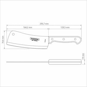 O Cutelo Tramontina Polywood com Lâmina em Aço Inox e Cabo de Madeira Vermelho 6 polegadas da Linha Polywood é ideal para cortar carnes e ossos com facilidade. A sua lâmina é produzida em aço inox, contando com um formato e espessura que garantem resistência e durabilidade. O cutelo é produzido com cabo em madeira tratada Polywood, ou seja, é altamente durável e resistente à impactos e altas temperaturas, mantendo suas características originais e beleza por muito mais tempo. A Tramontina sempre inovando para oferecer o melhor para você! Orientações Ideal para quebrar e separar os ossos.A lâmina de aço inox têm maior durabilidade do fio devido ao tratamento térmico. O cabo de madeira tratada Polywood é resistentes à impactos e alta temperaturas garantindo maior resistência e durabilidade. Rebites de alumínio. Pode ir à máquina de lavar louças facilitando seu dia a dia. Observações Antes da primeira utilização, lave bem a peça e seque-a. Produto cortante e perfurante: tenha cuidado ao manusear e mantenha fora do alcance das crianças.Para maior durabilidade do produto recomenda-se secar bem antes de guardar, mesmo após lavagem em máquina.Recomenda-se o uso de tábuas de polipropileno ou madeira da Tramontina para maior durabilidade do fio da sua faca.Não é indicado o uso da sua faca para o corte de alimentos congelados.Mantenha sempre sua faca afiada utilizando os afiadores da Tramontina.Para descarte do produto e embalagem siga as orientações de reciclagem vigentes. Características Gerais EAN13 7891112020634 DUN14 17891112020631 NCM 8214.90.90 Peso Líquido 0,2100 kg. Peso Bruto 0,2330 kg. Metragem 0,000704 m³. Dimensões Embalagem (Compr. X Larg. X Alt.) 20x 105x 335 mm. Dimensões Produto (Compr. X Larg. X Alt.) 294x 71x 19 mm. Cor 1 93272C Hexa