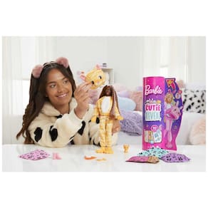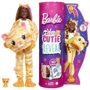 Com 10 surpresas em 1 pacote, as bonecas Barbie Cutie Reveal proporcionam a mais fofa experiência de unboxing com amigos e animais macios e fofos e modas, surpresas e diversão transformadora Desembale o pacote para encontrar um animal macio e de pelúcia com uma boneca Barbie dentro. Escolha entre um adorável coelho, gatinho, cachorrinho ou panda Qual boneca você vai revelar Levante a cabeça da fantasia para revelar uma boneca Barbie posável com cabelos longos e coloridos e detalhes de rosto brilhantes. Abra as 4 bolsas surpresa para encontrar roupas e acessórios uma saia super brilhante, um par de sapatos legais, um pente de esponja, uma tiara de orelha de animal e um mini animal de estimação combinando. As crianças podem vestir e acessórios para a boneca Barbie invertendo a parte superior da fantasia para encontrar uma jaqueta de lã super macia com uma estampa de moda fofa como mini arco íris ou corações. A cabeça da fantasia também se transforma em uma cama para o mini amigo de estimação As surpresas continuam com a fofura da mudança de cor use água gelada para transformar o rosto da boneca Barbie com pintura facial de animal e para abrir e fechar os olhos do mini animal de estimação. Troque de volta com água morna. Repita de e de As bonecas Barbie Cutie Reveal são um ótimo presente para crianças de 3 a 7 anos, especialmente aquelas que adoram descobrir surpresas fofas Marca: Não Informado