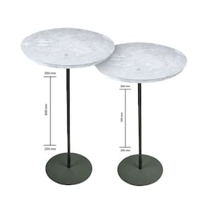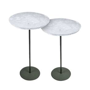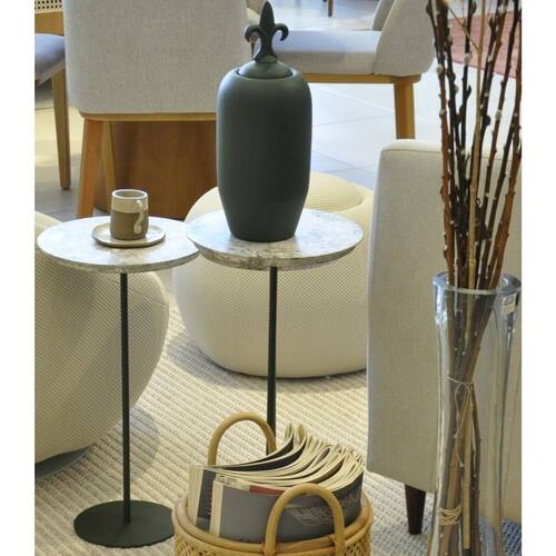 D-2 Mesas Laterais Norina MÁDIA/ALTA, tampos MDF/Marmorizado Imerso e bases Verde Oliva. Marmorizado - Cinza