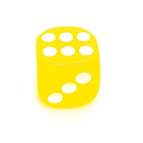 Dado 6 Faces Translúcido Amarelo 14mm, normalmente utilizado na Umbanda e no Candomblé pela falange da Malandragem, Zé Pilintra e Maria Navalha. Salve a Malandragem!
