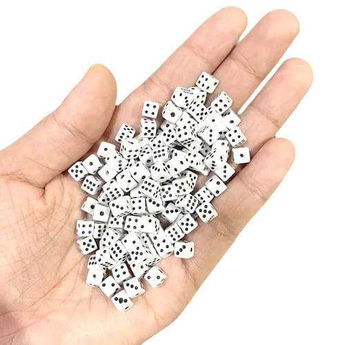 100 peças de minidados de 5 mm, dados de 6 lados para jogos de tabuleiro, dados a granel de 5 mm para jogo Conjunto de dados D6 Mini Dice Game Dot Square de 1/5" branco - 1 tamanho muito pequeno, tamanho é 5 mm* 5 mm* 5 mm, aproximadamente 1/5 polegada - 2 dados sólidos - pacote com 3 unidades - 4 materiais: feitos de ABS, esses dados têm uma ótima aparência. - 5 cores: branco - 6 - Perfeito para uma atividade temática simples, como jogo de tabuleiro, ensino de matemática, lembrancinhas e muitas situações que você deseja. - Garantia: substituição ou reembolso sem devolução se você receber conjuntos de dados com defeito. se não estiver satisfeito com este produto.