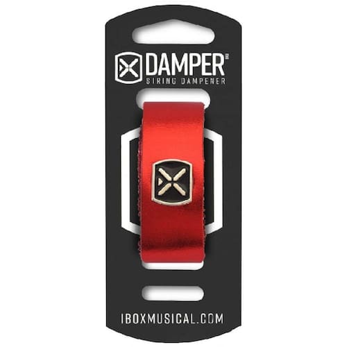 Damper Ibox Em Couro Legitimo E Tag Em Metal Vermelho Metalico Dmmd04 Abafador de cordas profissional, para instrumentos musicais, perfeito para performances ao vivo e gravações em estúdio. MD - Medium, para guitarras e baixos de 5 cordas e violões.