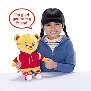 Oi vizinho! O amigo favorito de todos, Daniel Tiger, está pronto para ser seu amigo de "Volta às Aulas"! Este brinquedo de pelúcia super macio e fofinho de 12" apresenta música, sons e frases do show de sucesso da pré-escola, Daniel Tiger's Neighborhood! Basta apertar a mão de Daniel para ouvir frases tranquilizadoras e divertidas, além de 3 músicas! Este brinquedo de pelúcia vem com uma mochila removível com tema de tigre que se abre para armazenamento e um pequeno travesseiro de produtos macios Tigey que cabe dentro da mochila! Traga Daniel e Tigey para algumas aventuras temáticas da escola Grr-iffic! Requer 2 pilhas AAA (incluídas). Sugerido para idades a partir de 2 anos.