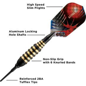 - Conjunto completo de dardos com design exclusivo — inclui três lances, três eixos de alumínio e três pontas 2BA Tufflex II, todas adornadas com os designs holográficos exclusivos da Atomic Bee para um acabamento atraente.