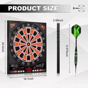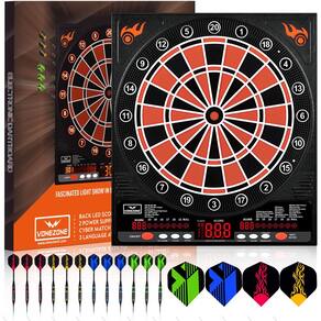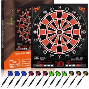 Em comparação com os dardos tradicionais, os dardos eletrônicos não são apenas mais elegantes, mas também adicionam mais diversão! O anúncio de voz integrado e os efeitos sonoros ricos do jogo podem definitivamente melhorar sua experiência de arremesso. Combinado com a tela de pontuação automática LCD brilhante, elimina a necessidade de pontuação manual e torna o jogo mais conveniente e suave. Nosso alvo eletrônico vem com 12 dardos, 50 pontas extras de dardos, 2 protetores de voo e chave de dados para atender a todas as suas necessidades de jogo de dardos. Seja uma sala de jogos, sala de estar, escritório ou porão e garagem, ela se encaixará facilmente e adicionará charme ao seu espaço como uma peça decorativa única. - Dardos elétricos que brilham: o alvo eletrônico vonezone Colonel adota teia de aranha ultrafina, combinada com anel protetor alargado e divisões triangulares, que combinam com seus dardos, reduz a taxa de recuperação de dardos, aproveite a experiência de jogo perfeita - LCD de alta definição: a face alvo está equipada com um visor LCD claro e brilhante, fácil de ler e operar. O sistema de pontuação eletrônico integrado calcula automaticamente as pontuações e suporta transmissões em três idiomas em inglês, alemão e francês - Modos de jogo enriquecidos: os alvos elétricos oferecem 34 tipos de jogos e 355 variações, o alvo eletrônico Coronel é projetado com cor circular digital exclusiva para cada jogador. Até 8 jogadores e suporta jogos de um jogador e computador - Uso conveniente: o alvo eletrônico é alimentado por 3 pilhas AA ou o adaptador incluído, e pode até ser alimentado por fonte de alimentação móvel, você pode jogar em ambientes internos ou externos a qualquer momento sem ocupar muito espaço, uma excelente opção de entretenimento - Acessórios completos: vem com 12 dardos, 50 pontas extras, 2 protetores de voo, chave de dardos e adaptador de energia. Este alvo eletrônico para adultos é definitivamente um complemento ideal para sua sala de jogos, sala de estar ou bar para ajudá-lo a aproveitar os dardos ao máximo!