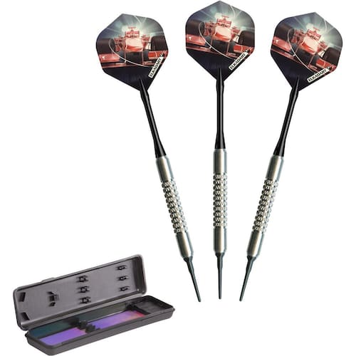 - Possui pontos de dardo de ponta macia 2BA Tufflex Tips II que têm um cone reforçado, o que os torna extremamente fortes e duráveis; cada dardo de ponta macia pesa 16 gramas