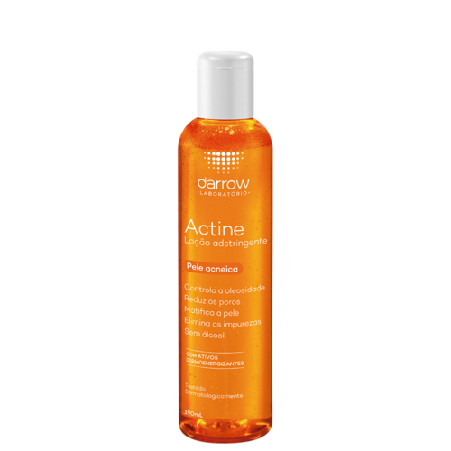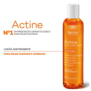 Loção adstringente para pele oleosa e com acne. Darrow Actine finaliza a limpeza da pele com a remoção da oleosidade retida nos poros e o controle do brilho sem deixar o rosto ressecado.