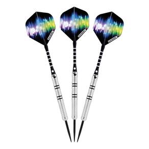 - Voos de qualidade são construídos para ajudar a aumentar a velocidade e reduzir o arrasto, proporcionando uma trajetória de voo consistente com extrema precisão; cada dardo com ponta de aço pesa 21 gramas