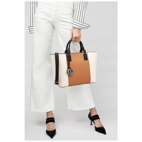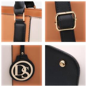 DESIGN Mulheres fashion em dois tons com carteira combinando com uma borla da moda. Fecho de correr superior, ferragens douradas e tachas inferiores. Pode ser como uma sacola feminina, bolsa diária, bolsa de ombro, bolsa de alça superior, bolsa de trabalho, bolsa para laptop, etc.
