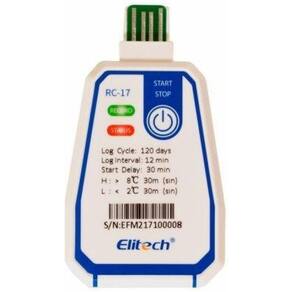 Termômetro Registrador de dados de Temperatura Descartável USB RC-17 Elitech RC-17 lida com o monitoramento de temperatura para sua cadeia de abastecimento de alimentos, desde o processamento, transporte até a distribuição. Armazene até 16.000 leituras de temperatura com aviso de status de LED e design super pequeno e leve. Este registrador de temperatura descartável é embalado em uma bolsa à prova dágua, monitorando os dados sem retirá-los da bolsa. Recursos Gere relatório de dados em PDF automaticamente. A carcaça fina de 8 mm encaixa facilmente na embalagem padrão. Relatório de dados automaticamente gerado após a inserção direta do USB em um PC Com Windows ou . IP67 à prova d'água atende aos requisitos HACCP para segurança alimentar Alimentado por bateria interna não removível, conformidade com a certificação de segurança da aviação 1 ano de Especificações Faixa de medição de temperatura: -30º C a 70ºC / -22ºF a 158ºF Capacidade de memória: 16.000 leituras Período de gravação: 6, 15, 30, 60, 90, 120, 180 dias personalizável Tipo de alarme: único ou cumulativo Tipo de relatório: Formato PDF Interface de dados: USB Tipo de sensor: NTC interno Fonte de alimentação: Bateria de lítio de temperatura ampla CR2450 integrada Vida útil da bateria: Aproximadamente 2 anos armazenado e em ambiente de temperatura normal Grau de proteção: IP67 Dimensão:93mm C x 58mm L x 8mm A Peso:20g Marca: Não Informado