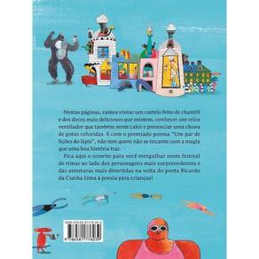 Esta é uma obra lúdica e cativante que celebra a volta de Ricardo da Cunha Lima à poesia para as crianças com cenários fantásticos e repletos de rimas divertidas. Nas páginas deste livro, os leitores vão visitar um castelo feito de chantili e dos doces mais deliciosos que existem, conhecer um veloz ventilador que também sente calor e presenciar uma chuva de gotas coloridas. Além disso, com o premiado poema “Um par de lições do lápis”, todos vão se encantar com a magia que uma boa história traz. Este festival de rimas ao lado de personagens surpreendentes, aventuras divertidas e ilustrações de Rodrigo Fischer que brincam com elementos surreais e nonsense marca a volta de Ricardo da Cunha Lima à poesia dedicada aos leitores mais jovens. Indicado para leitores a partir de 6 anos. Marca: Não Informado