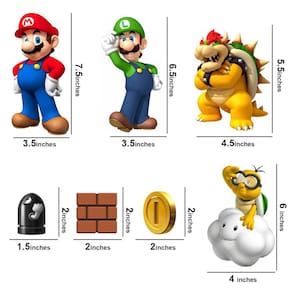 Conjunto de decalques de parede Super Mario Bros Crie uma fuga encantadora para o Reino dos Cogumelos com nossa exclusiva coleção de decalques de parede Super Mario. Cada decalque vibrante e cortado com precisão captura o capricho e a cor do jogo icônico, oferecendo um visual divertido e polido que encantará fãs de todas as idades. Decoração de quarto Mario transformadora: Este conjunto cuidadosamente selecionado inclui Mario, Luigi, Yoshi e Bowser, juntamente com itens amados como estrelas, moedas, tijolos e blocos de perguntas. Organize-os de inúmeras maneiras para recriar cenas clássicas ou inventar novas aventuras diretamente em suas paredes. Aplicação e ajuste sem esforço: Projetados com a conveniência em mente, esses adesivos de parede Mario se aplicam suavemente a qualquer superfície limpa, permitindo ajustes e reposicionamento fáceis. É a decoração do quarto que cresce com seu filho, incentivando sua imaginação a correr solta sem o compromisso de tinta permanente ou papel de parede. Ideal para presente: perfeito para aniversários, feriados ou apenas porque, o conjunto de decoração de quarto Super Mario é uma surpresa mágica para os entusiastas da Nintendo em sua vida. Instruções de uso: Certifique-se de que a embalagem não esteja danificada de forma alguma. Planeje o design; você pode aplicar como achar melhor. Seja criativo! Prepare sua parede/superfície: Limpe com um pano seco, se necessário. O decalque irá aderir a qualquer superfície lisa Retire e cole - Decalque de parede Mario para construir uma cena divertida do universo Mario - O conjunto Mario Decor inclui Mario, Luigi, Yoshi e Bowser, juntamente com outros itens - Decoração de quarto encantadora Mario para meninos e meninas - Fácil de aplicar - basta remover a película e colar - Use para decorar berçário, quarto infantil, sala de jogos ou como decoração de festa com tema Mario
