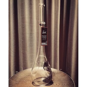 Esta peça é produzida com cristal transparente. Este decantador foi projetado para conter uma única garrafa de vinho.
