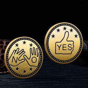 Material: ferro Peso: 35 g Tamanho: 4 x 0,3 cm Embalagem: 1 x moeda de tomada de decisão CoinFun — apresenta símbolos de mão SIM e NÃO, perfeitos para uma tomada de decisão rápida e divertida em qualquer situação. Design elegante de símbolos — cercado por estrelas com um motivo gravado em negrito, adicionando uma aparência única e atraente. Construção metálica durável — Feita de ferro de alta qualidade com acabamento dourado polido para brilho e durabilidade duradouros. Compacto e leve — 4 cm de diâmetro e 0,3 cm de espessura, fácil de transportar, virar ou exibir em seu conjunto colecionável. Moeda colecionável inovadora — Ideal para quem gosta de desafios divertidos, jogos de decisão ou fichas de sorte exclusivas.
