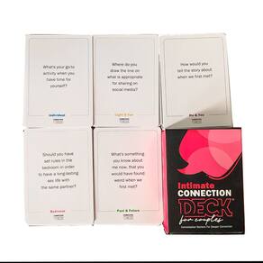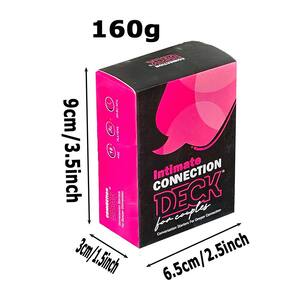 Material: Cor do papel: preto Tamanho da embalagem: 6,5 × 3 × 9 cm Peso da embalagem: 0,16 kg Lista de embalagem: 1 x baralho de cartas de conversação para casais (50 cartas) Deep Conversation Starter for Couples — O Intimate Connection Deck foi projetado para ajudar casais a iniciar conversas significativas e fortalecer a intimidade emocional. Perfeito para encontros noturnos e momentos românticos - esses cartões de conversa criam discussões envolventes que ajudam os parceiros a explorar sentimentos, memórias e objetivos de relacionamento. Incentiva a comunicação honesta — Cada cartão inclui instruções atenciosas que inspiram abertura, confiança e compreensão mais profunda entre casais. Jogabilidade simples e agradável — Fácil de jogar durante encontros noturnos, férias ou noites tranquilas juntos, ajudando casais a se conectarem enquanto se divertem. Conjunto compacto de cartões românticos — Um deck leve e portátil com uma caixa resistente o torna conveniente para levar para viagens, reuniões ou momentos especiais.
