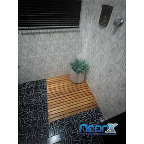 Deck De Madeira Chuveiro Box Banheiro Capacho 90x70 cm Pintado - Cor: Verniz Natural UV