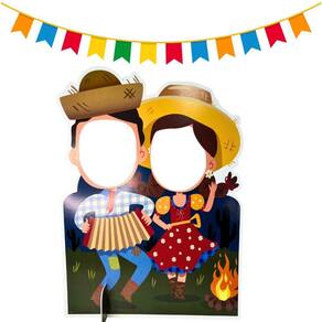 Deixe sua festa junina mais divertida e temática com o Display Casal Junino para Fotos - 76x57cm Perfeito para criar um espaço interativo, este display traz a ilustração de um simpático casal caipira com recortes para o rosto, ideal para tirar fotos criativas com convidados. Feito em material leve e resistente, é fácil de montar e decorar ambientes como festas escolares, arraiás, aniversários e eventos corporativos. Um item que garante boas risadas e registros inesquecíveis no clima de São João JNP49001 Marca: Não Informado