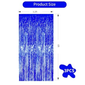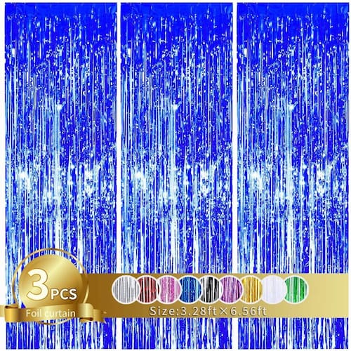 TONIFUL, 3 peças de flâmulas azuis, fundo de cabine fotográfica azul, flâmulas metálicas, cortinas com franjas de alumínio azul para aniversário, Natal, Ano Novo, despedida de solteira, formatura, decoração de flâmulas de formatura (9,9 pés x 6,6 pés)