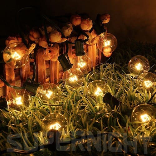 Características em destaque Base da lâmpada: E12 G40 Voltagem: AC110V/AC220V por lâmpada Potência: 7W Tipo de lâmpada: incandescente Quantidade de lâmpadas: 25 unidades Impermeável: IP44 Conecte até um máximo de 3 fios Material: borracha Comprimento: 25 pés Veja menos