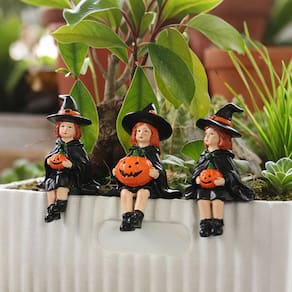 Material: Resina Tamanho: 4,2 a 9 cm, consulte a imagem para obter detalhes de tamanho específico Peso: 500 g ['Charming Witch Figures — Este conjunto inclui três estátuas de bruxa sentada segurando abóboras, trazendo o espírito divertido de Halloween à decoração de jardins, prateleiras ou vitrines de varanda. ', 'Detailed Resin Craft — Feita de resina durável, cada boneco apresenta detalhes pintados à mão, de capas pretas a rostos expressivos, criando um ornamento sazonal vívido. ', 'Opções de exibição versáteis — Ideal para vasos de flores, peitoris de janelas, pátios, estantes de livros ou entradas, adicionando um toque caprichoso e assustador a cenas internas ou externas. ', 'Atmosfera sazonal — Projetadas para temas de Halloween, as estátuas realçam o ambiente de outono com um estilo icônico de abóbora e bruxa, perfeito para arranjos festivos. ', 'Design de assento estável — Cada boneco é feito para se encaixar com segurança nas bordas, tornando-o fácil de colocar em vasos, saliências ou degraus sem suporte adicional']