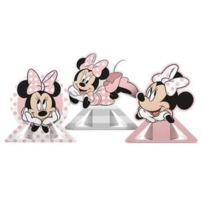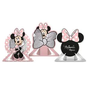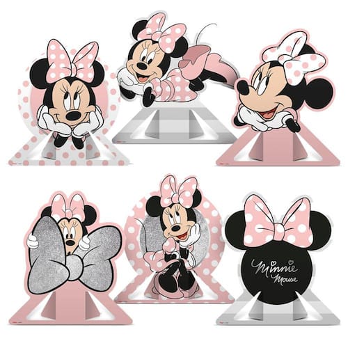Conjunto com 6 elementos de decoração de mesa da Minnie Mouse em tons de rosa.