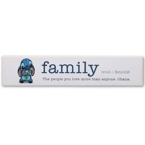 Ohana significa família! Preste homenagem ao seu filme favorito da Disney com este adorável letreiro de madeira. - Produto oficial da Disney: Ohana significa família! Preste homenagem ao seu filme favorito da Disney com esta adorável placa de madeira. - Placa vintage divertida: com leitura de texto, "Família - as pessoas que você ama mais do que ninguém. Ohana", esta peça divertida e adorável é uma ótima maneira de expressar seu apreço por seus entes queridos. - Material: Esta placa imperdível é feita de madeira MDF resistente e leve com ferragens para pendurar dente de serra para facilitar a exibição na parede. Feito nos EUA. - Locais de uso: Exiba esta decoração peculiar no quarto de seus filhos, na sala de jogos ou no banheiro para um toque de personalidade! - Tamanho: 42 cm L X 7 cm A X 1 cm P