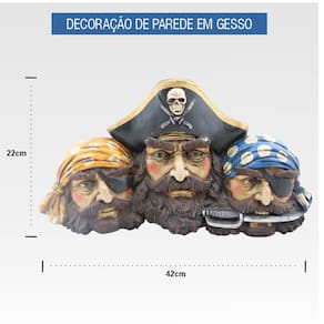 Características: Tema Pirata Realista: Peça de parede com rosto do Barba Negra mais 2 piratas, expressão detalhada e visual impactante.Pintura Artesanal: Pintada à mão, com riqueza de cores e acabamento premium.Produto 100% Brasileiro: Feito por artesãos locais com materiais de alta durabilidade.Material em Gesso de Qualidade: Estrutura firme, ideal para paredes internas ou áreas cobertas.Presente Criativo: Excelente para decorar bares, salas de jogos, casas de praia, áreas de lazer e muito mais.