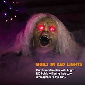 É hora de surpreender doces ou travessuras com JOYIN Light up Witch Groundbreaker com sons assustadores e sensor de ativação Traga diversão assustadora para sua festa de Halloween com esta bruxa escalada de Halloween mortos-vivos que parece estar quebrando o chão em seu quintal para definir a cena de terror perfeita.