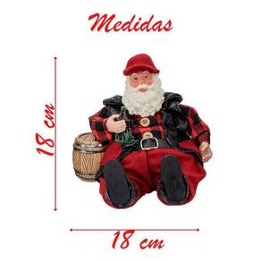 -01 unidade ;Papai Noel Sentado Com Barril em Resina 18cm.