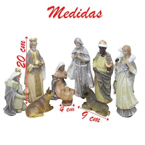 Contém: 1 Presépio De Resina De Natal Com 9Peças Tamanho Da Maior Peça é de 20cm.