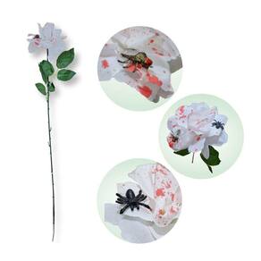 Efeito de Sangue: As gotas de sangue falso pelas pétalas brancas adicionam um toque de horror ao enfeite. O líquido vermelho parece quase fresco, como se a flor tivesse absorvido algo sinistro.