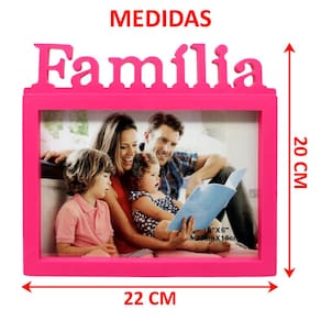 1 Porta Retrato De Mesa Rosa Personalizado Com Nome Família De 20x15cm;
