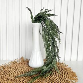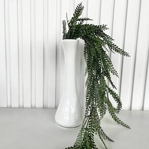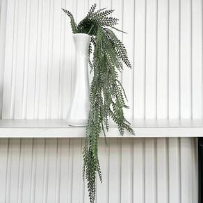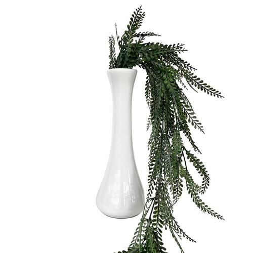 Decoração sala rack quarto aparador vaso solitário de cerâmica moderno na cor branca com planta caída moderna artificial.