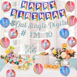 Decorações especiais de aniversário de décimo aniversário para seu filho querido especial! O pacote inclui: 12 balões de látex arco-íris de 30,5 cm. 2 balões de 45,72 cm de coração de arco-íris 1 balão de alumínio número 10 de 101,6 cm 1 × enfeite de bolo com design próprio gradiente arco-íris Peace Out de um dígito I'm 10 1 faixa de feliz aniversário tie dye de 16 x 20 cm. 1 banner com desenho próprio de arco-íris degradê Peace Out de um dígito I'm 10 Nota especial: 1. Mantenha o topo de bolo longe de animais de estimação e crianças menores de seis anos. 2. Mantenha os balões longe do fogo e não encha demais os balões. 3. Recomendamos que você encha os balões cerca de uma hora antes da festa. - ?O pacote inclui?: 12 balões de látex arco-íris de 30,5 cm, 1 faixa de feliz aniversário tie dye, 1 faixa gradiente arco-íris Peace Out com um dígito I'm 10, 2 balões de coração de arco-íris de 45,7 cm, 1 balão de alumínio número 10 arco-íris de 101,6 cm, 1 gradiente de arco-íris paz fora de um dígito, 10 topo de bolo. - ?Design exclusivo?: Decorações tie dye de aniversário de 10 anos para meninas com glitter de papel gradiente arco-íris "Peace out one digits I'M 25.4 cm e banner de aniversário tornam a festa de aniversário do seu filho muito legal. - ?Local amplo para uso?: perfeito para festas de aniversário e adequado para festa de 10 anos, balões de 10 anos tranquilizam um dígito. O topo de bolo I'M 10 também pode ser utilizado para decoração, colar na parede etc. - ?Fácil de montar?: Balões infláveis com hélio ou ar, monte-os de acordo com as mesmas cores ou cores mistas, e os balões de látex e os balões de alumínio número 10 podem flutuar com o hélio. E você pode usar linhas para amarrar os banners, é muito fácil de instalar. - ?Qualidade premium?: Nossos artigos de festa de décimo aniversário são duráveis e têm alta segurança. Todos os balões deste produto são infláveis com ar ou hélio, balões inflados com hélio podem flutuar. Quanto aos balões inflados, não encha os balões em ambiente de alta temperatura e não encha demais, encha até 85%, caso contrário, ele quebrará facilmente.