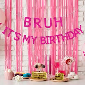 - Banner Teen Girl Bruh It's My Birthday: o pacote inclui 1 banner “BRUH IT'S MY BIRTHDAY”. Com a ajuda do banner de aniversário do pincel rosa choque, você pode experimentar um estilo de festa diferente. Será uma ótima decoração de festa para a festa de aniversário da sua garota.