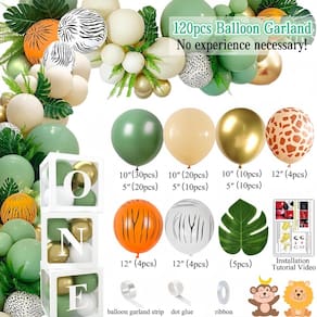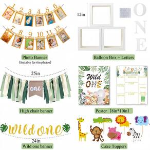 - Wild One Birthday Magic: Esperamos transformar a primeira celebração do pequeno em uma fascinante aventura de safári na selva. Daidle traz para você o que há de melhor em decorações de aniversário de Wild One. Este pacote indispensável de decoração de festa de aniversário inclui banner de cadeira alta, banner fotográfico, balões de animais, folhas verdes e uma charmosa cobertura de bolo, além de outras decorações de festa necessárias, facilitando a organização de uma festa perfeita de primeiro aniversário