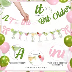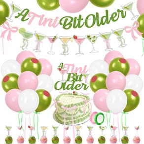 Decorações de festa de aniversário com arco de martini, verde e rosa, glitter, faixa mais antiga, guirlanda, bolo, balões para meninas e mulheres, moderno, bar de martini, aniversário, despedida de solteira, chá de panela, suprimentos de festa - Olive You! Chamando todas as garotas Martini! - Apenas um tema de aniversário um pouco mais antigo, tema de aniversário feminino e fofo. Laços rosa, tema fofo verde-oliva. Festa de aniversário divertida com tema de martini. Agite sua celebração com nosso aniversário com tema de martini "um pouco mais velho"! - Double The Fun Double The Glam - A celebração de aniversário "um pouco mais velho" tinha que ser absolutamente épica. Este design encantador apresenta uma taça de martini divertida, completa com uma azeitona atrevida, definindo o tom perfeito para uma festa divertida e festiva. Levante uma taça e prepare-se para comemorar com nossa festa peculiar de martini! - Decoração pré-montada e fácil – o banner A Tini Bit Older e o banner de arco de coquetel de Martini já foram montados, economize seu tempo ao decorar sua festa. O topo de bolo "A Tini Bit Older" com glitter e 12 peças de cupcake são pré-colados, então você só precisa pendurá-lo onde quiser decorar, fora do jardim ou interno para um destaque colorido - Martini Lovin Bestie – o banner A Tini Bit mais antigo, o banner de laços de coquetel Martini e os topos de cupcake são feitos de papelão de alta qualidade. Estes balões são feitos de material de látex espesso, seguros e duráveis, nunca explodem facilmente. Perfeito para festa de aniversário de martini A Tiny Bit Older, festa temática de martini, festa temática de coquetel de martini, festa de bar de coquetel de martini, festa de despedida de solteira de martini, chá de panela de martini, etc - Design exclusivo para Martini - kit de decorações de festa inclui: 1 faixa de Martini "A Tini Bit Older", 1 faixa de arco de coquetel de martini, 1 peça de topo de bolo "A Tini Bit Older", 12 peças de enfeite de cupcake de coquetel Martini, 26 balões, 1 rolo de fita rosa, 1 rolo de fita verde, 10 peças/conjunto de papelão redondo vermelho com distribuição. Esta decoração de festa com tema de martini será um destaque perfeito, lembrancinha de festa ou peça central para o seu evento. desmaio!