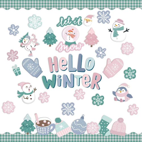 Design temático de inverno: nossas decorações de quadro de avisos de inverno apresentam um esquema de cores rosa e azul, com uma variedade de flocos de neve, pinguins, bonecos de neve, árvores de Natal, cenas de inverno e padrões de Natal; diferentes formas e estilos parecem vívidos e requintados, adicionando um toque de calor e alegria ao seu inverno