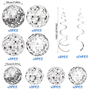 Características e finalidades Prepare-se para trazer de volta a febre da discoteca com estes redemoinhos pendurados em bolas de discoteca! Nossas decorações de festa inspiradas nos anos 70 apresentam uma placa de bola de discoteca brilhante que adiciona um toque de glamour a qualquer evento. Com 54 peças incluídas, você pode criar uma atmosfera divertida e festiva que fará seus convidados dançarem a noite toda. Se você está dando uma festa com tema retrô ou apenas quer adicionar um pouco de diversão e toque especial à sua próxima reunião, esses redemoinhos de bola de discoteca são a escolha perfeita. Peça agora e prepare-se para iluminar a pista de dança com um fabuloso inferno de discoteca! Especificações Tamanho: este cartão de recorte para festa de discoteca dos anos 70 tem 15 x 15 cm, 18 x 18 cm. Cada espiral pode se estender por cerca de 71-91 cm de comprimento. Material: folha de plástico e papel. Cor: prata. A embalagem inclui: Você receberá 54 peças de decorações de festa de discoteca em espiral contendo 24 cartões, 24 espirais de folha única e 6 decorações de espiral dupla sem recortes. - Adicione uma vibração retrô à sua festa com estas 54 peças de decorações de festa de discoteca, que incluem espirais pendurados em bola de discoteca e placa de bola de discoteca brilhante. - Esta decoração de teto de redemoinhos de festa dos anos 70 é feita de papel plástico e papel, garantindo qualidade confiável e duradoura. - Com um pacote de 24 cartões, 24 espirais pendurados de folha única e 6 decorações de espiral dupla, esses espirais de bola de discoteca são fáceis de montar e adicionarão um toque especial a qualquer ocasião. - Pendure essas decorações de festa de discoteca em seu escritório, quarto ou festa para criar uma atmosfera feliz quando estiverem balançando e brilhando. - Estes redemoinhos para pendurar bolas de discoteca são perfeitos para festa de aniversário retrô, festa de discoteca ou festa dos anos 70, tornando-os uma escolha versátil para qualquer reunião festiva.