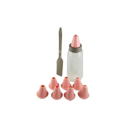 Passo 1 - Adicione com a ajuda da espátula o glacê real ou chantily no decorador de bolo Passo 2 - Escolha o bicoo a ser utilizado, encaixe-o na bisnaga já no glacê/Chantily e por fim, colocar o anel de fixação, girando-o até ficar bem justo Passo 3 - Incline a bisnaga em cima do bolo ou doce a ser decorado Passo 4 - Aperte levemente a bisnaga, até atingir o formato e espessura desejada para fazer a decoração Ean: 7893736700350